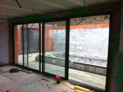 Complete new build from the ground up of a contemporary modern house featuring a glass front and designed around a koi pond. All rooms have a spectacular view of both the outside and the interior courtyard.